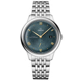 Since 1994, the OMEGA De Ville Prestige Collection has become an icon of timeless sophistication. Each 41mm stainless steel model presents a range of stylish finishes and colours, making it perfect for a variety of personalities. The domed PVD pine green dial features yellow gold-plated hands, alternating Roman numerals and cabochon indexes. Additionally, it offers a date window at 3 o'clock, a small-seconds subdial at 6 o'clock, and a railway minute track on the outer zone. This Master Chronometer certified watch is powered by the OMEGA Master Co-Axial Calibre 8802, and its scratch-resistant sapphire crystal caseback reveals all.