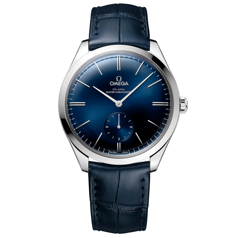 Characterised by its slim and stylish case, the Trésor line was first developed by OMEGA in 1949 and featured the renowned 30mm calibre. After more than half a century, it continues to astound with one of today's most advanced mechanical movements. This particular model features a stainless steel case measuring 40 mm, paired with a blue leather strap. While the blue dial includes a Small Seconds display at 6H, there are hands and domed indexes made from 18ct white gold. Within, this De Ville Trésor is powered by OMEGA's renowned Co-Axial Master Chronometer Calibre 8926 and is recognised at the highest levels for precision, accuracy, and magnetic resistance.