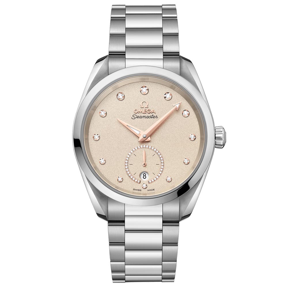 This 38mm Seamaster Aqua Terra model pays homage to OMEGA's extensive nautical history. Its symmetrical stainless steel case boasts a wave-edged design on the reverse side.