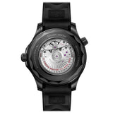 At 43.50mm, the black ceramic [ZrO2] case, bezel, wave-pattern dial, crown & helium escape valve deliver a distinctive, unified and sculpted aesthetic. Visibility is enhanced thru anthracite Super-LumiNova, black PVD indexes & skeleton hands with a dot at 12H, while an integrated black rubber strap & ceramic buckle complete the look. The movement can be observed through the sapphire crystal caseback window, housing OMEGA's certified Co-Axial Master Chronometer Calibre 8806.