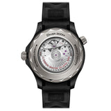 This 43.5 mm model has a black ceramic and grade 5 titanium case, as well as a black ceramic bezel with a white enamel diving scale. The dial is crafted from brushed black ceramic [ZrO2] and features laser-engraved raised waves. The skeleton hands and raised indexes are both made of PVD titanium and are filled with white Super-LumiNova, while the helium escape valve is crafted in a conical design.