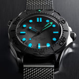 This 42mm watch is meticulously made from stainless steel and features a grade 5 titanium bezel with a diving scale in positive relief, laser-ablated for precision. The standout feature is a single white Super-LumiNova dot at the 12 o'clock mark.