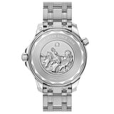 Flipping the watch reveals a stamped commemorative Seamaster logo featuring a trident-bearing Poseidon and two seahorses that represent OMEGA's 1956 original and its current design. At the back is OMEGA's Co-Axial Master Chronometer calibre 8800, one of the most precision-certified movements by the Swiss Federal Institute of Metrology (METAS).