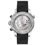 This 44mm timepiece boasts a stainless steel frame and a polished black ceramic bezel, with a white enamel scale for diving. The pushers, dial and subdial hands are also crafted from polished black ceramic, with laser-engraved waves and a date window found at 6 o'clock. Rhodium-plated hands and indexes, filled with white Super-LumiNova, complete the design.