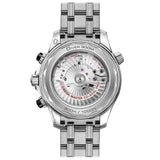 This 44mm timepiece flaunts a stainless steel composition that is complemented by a polished black ceramic bezel with a white enameled diving scale. The pushers likewise share the same black ceramic finish along with the dial, which contains laser-engraved waves and a date window at the 6 o'clock position. Rhodium-plating highlights all subdial hands and indexes, which are filled with the luminous Super-LumiNova.