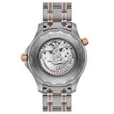 The watch is designed with a Grade 2 titanium bracelet and tantalum and 18ct Sedna™ gold links. The OMEGA Seahorse motif is displayed on the transparent caseback, giving a view of the OMEGA Master Chronometer Calibre 8806 inside.