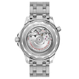 This 42mm timepiece is exquisitely crafted from stainless steel, with a black ceramic bezel boasting a white enamel diving scale. The dial showcases laser-engraved wave patterns and a date window at 6 o’clock, made with polished black ceramic. Meanwhile, the skeleton hands and raised indexes are coated with rhodium plating, and filled with luminescent white Super-LumiNova. The helium escape valve has also been designed with a conical shape.