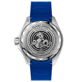 This timepiece features a rubber strap with blue lining and a Grade 5 titanium OMEGASTEEL buckle, and a laser-engraved Sonar emblem, with OMEGA's iconic Seahorse at its centre, on the caseback's medallion. Beneath its exterior lies the OMEGA Co-Axial Master Chronometer Calibre 8912 movement.