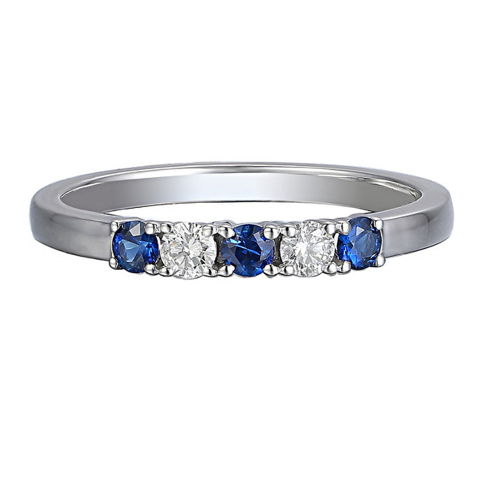 Sophisticated and distinct, this wonderful five stone ring features striking round brilliant cut blue sapphires totalling 0.24ct, which gently sits harmoniously with the dazzling round brilliant cut diamonds that total 0.13ct. Crafted in platinum, this beautiful ring emits a regal and majestic presence.