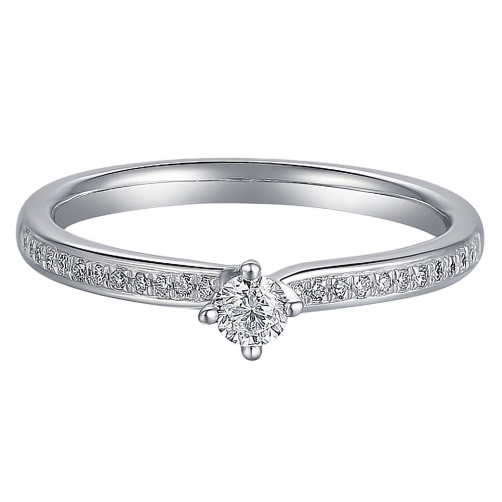 This stunning round brilliant cut diamond engagement ring is exquisitely hand crafted in beautiful platinum. Adorning the shoulders of this ring are dazzling round brilliant cut diamonds, all with a total carat weight of 0.33ct, D in colour, SI1 clarity.