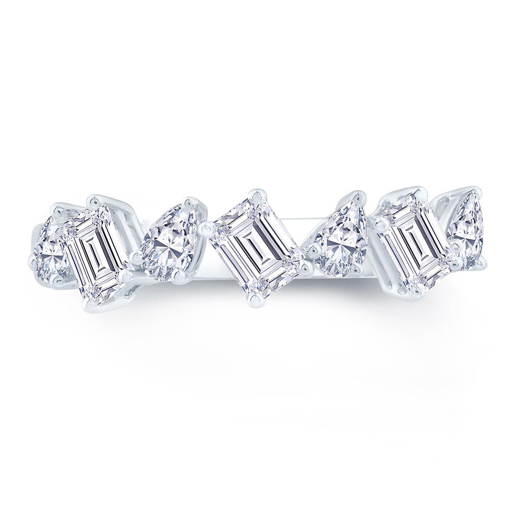 Shine bright with this stunning diamond half eternity ring. Handcrafted in beautiful platinum, the dazzling pear and emerald cut diamonds sit in a claw setting adorning half of the band, with a total carat weight of 1.00ct, G colour, SI clarity.