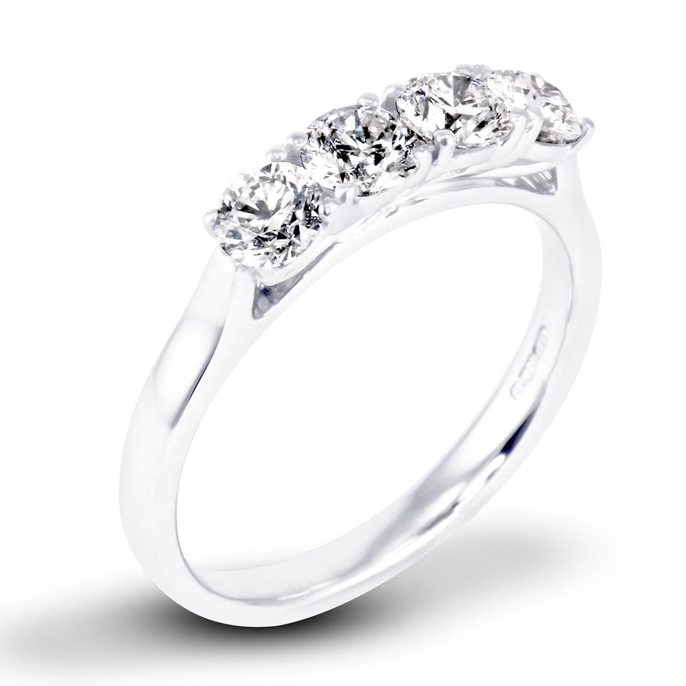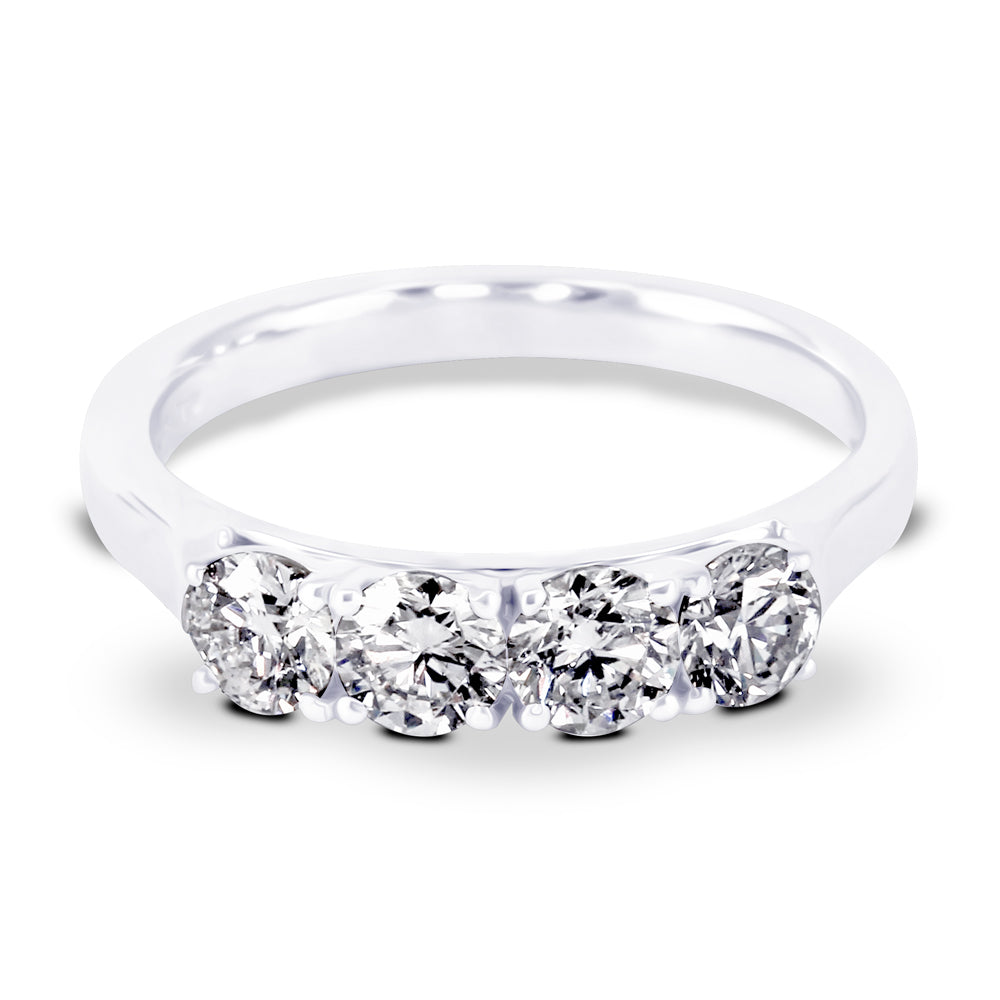 This stunning four stone diamond ring is beautifully crafted in platinum, and is set with 1.05ct of dazzling diamonds. Each round brilliant cut diamond is approximately 0.26ct.