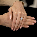 The stunning marquise cut diamond is an elegant and elongated shape. This beautiful engagement ring is expertly hand crafted in Platinum. The stunning centre marquise cut diamond is 0.53ct, F in colour, VS2 clarity (GIA certificated). The centre stone is perfectly framed by a dazzling double halo of round brilliant cut diamonds and diamond set shoulders, with a total carat weight of 1.02ct. Total carat weight of this ring is 1.55ct.