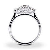 Platinum 1.81ct three stone oval cut Diamond engagement ring. 1.01ct centre Diamond, G in colour, SI1 clarity, GIA certificated. Two side Diamonds 0.40ct each, G in colour, SI1 clarity, non-certificated.