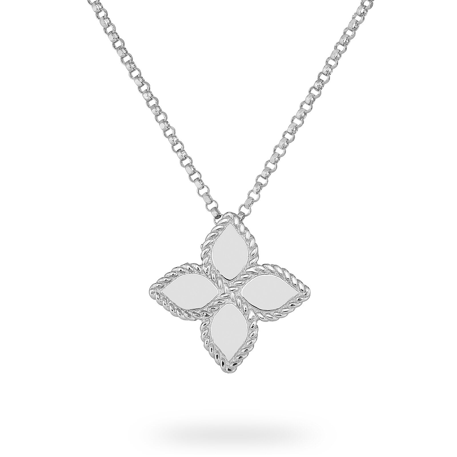 This beautiful Roberto Coin necklace has been hand crafted to perfection in 18ct white gold. This necklace is part of the Princess Flower collection, which is a blossoming suite of flower-inspired jewellery.