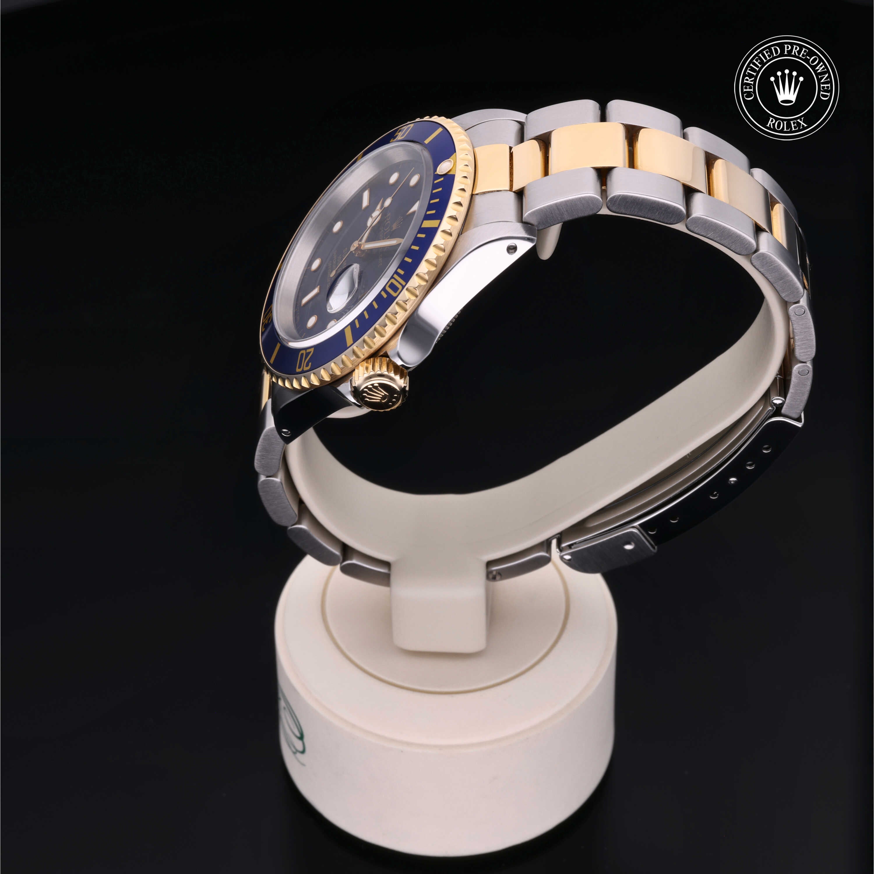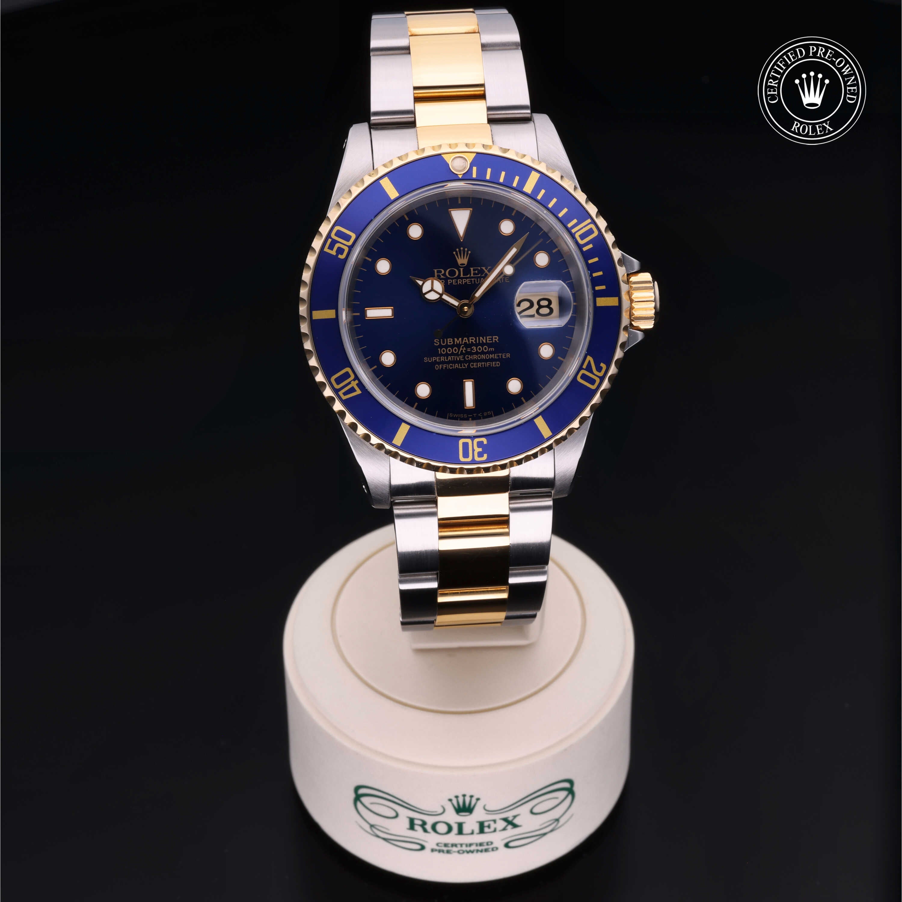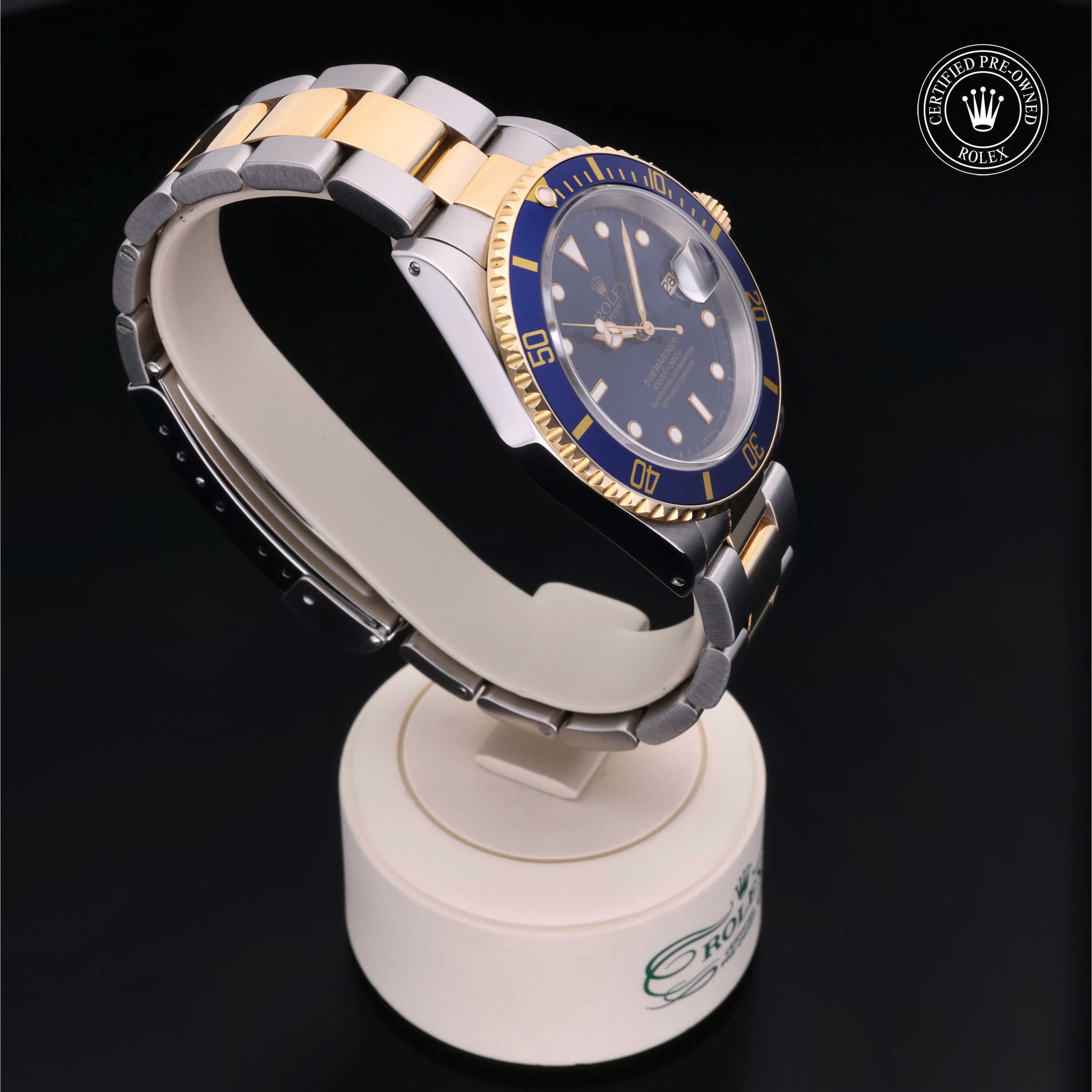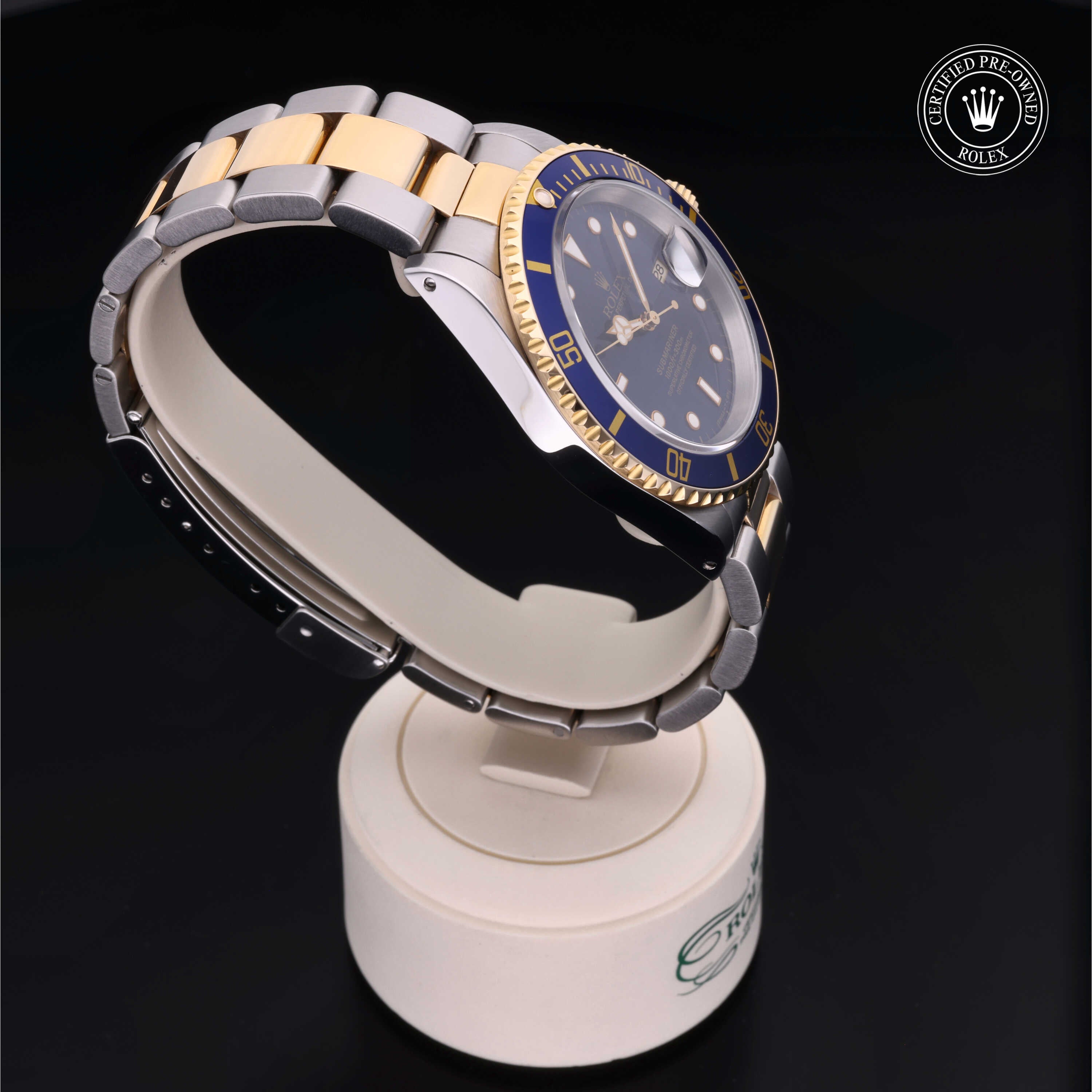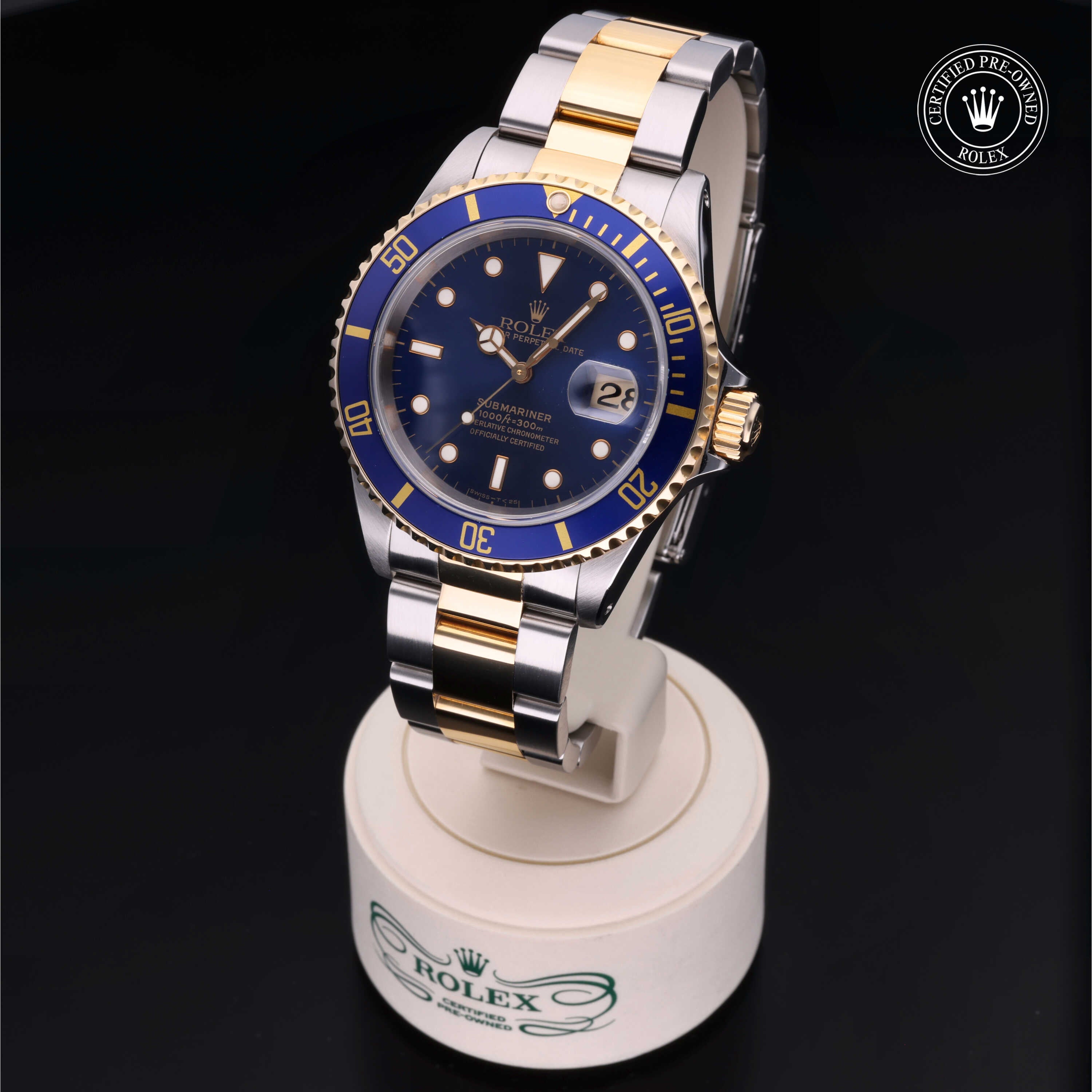 Certified pre-owned 1997 Rolex Submariner ref. 16613 with a 40mm Oystersteel and 18ct yellow gold case, blue dial with gold accents, and Oyster bracelet. Powered by the legendary Calibre 3135, it’s a perfect mix of luxury, durability, and iconic Rolex style.