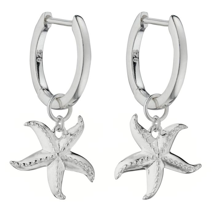 Add a splash of the ocean to your wardrobe with these beautiful sterling silver starfish hoop earrings.