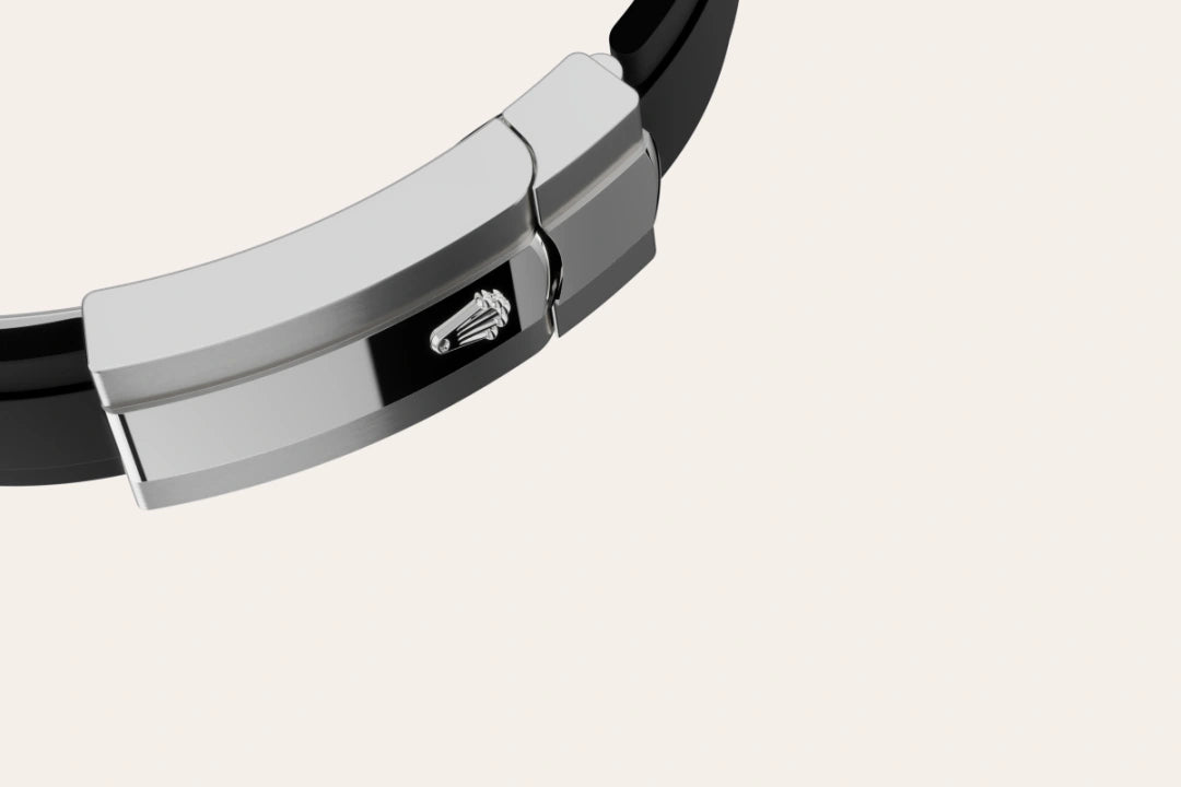 The Sky-Dweller’s new Oysterflex bracelet, developed by Rolex and patented, offers a sporty alternative to metal bracelets. The bracelet attaches to the watch case and the Oysterclasp by a flexible titanium and nickel alloy metal blade. The blade is overmoulded with high-performance black elastomer which is particularly resistant to environmental effects, very durable and perfectly inert for the wearer of the watch. For enhanced comfort, the inside of the Oysterflex bracelet is equipped with a patented longitudinal cushion system that stabilizes the watch on the wrist and fitted with an 18 ct white gold Oysterclasp. It also features the Rolex Glidelock extension system, designed by the brand and patented. This inventive toothed mechanism, integrated beneath the clasp, allows fine adjustment of the bracelet length by some 15 mm in increments of approximately 2.5 mm, without the use of tools.