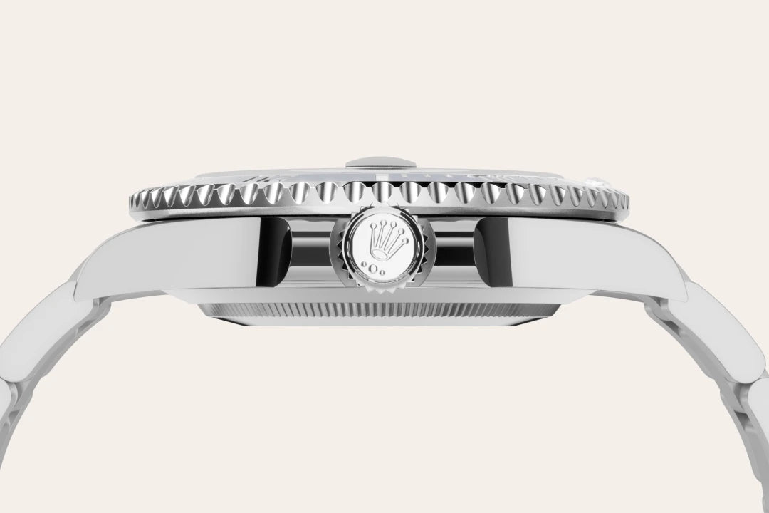 The Submariner's rotatable bezel is a key functionality of the watch. Its 60-minute graduations allow a diver to accurately and safely monitor diving time and decompression stops. Manufactured by Rolex from a hard, corrosion-resistant ceramic, the Cerachrom bezel insert is virtually scratchproof. A luminescent capsule on the zero marker ensures legibility, no matter how dark the environment. The bezel’s knurled edge is carefully designed to offer excellent grip under water, even with gloves.