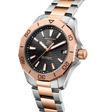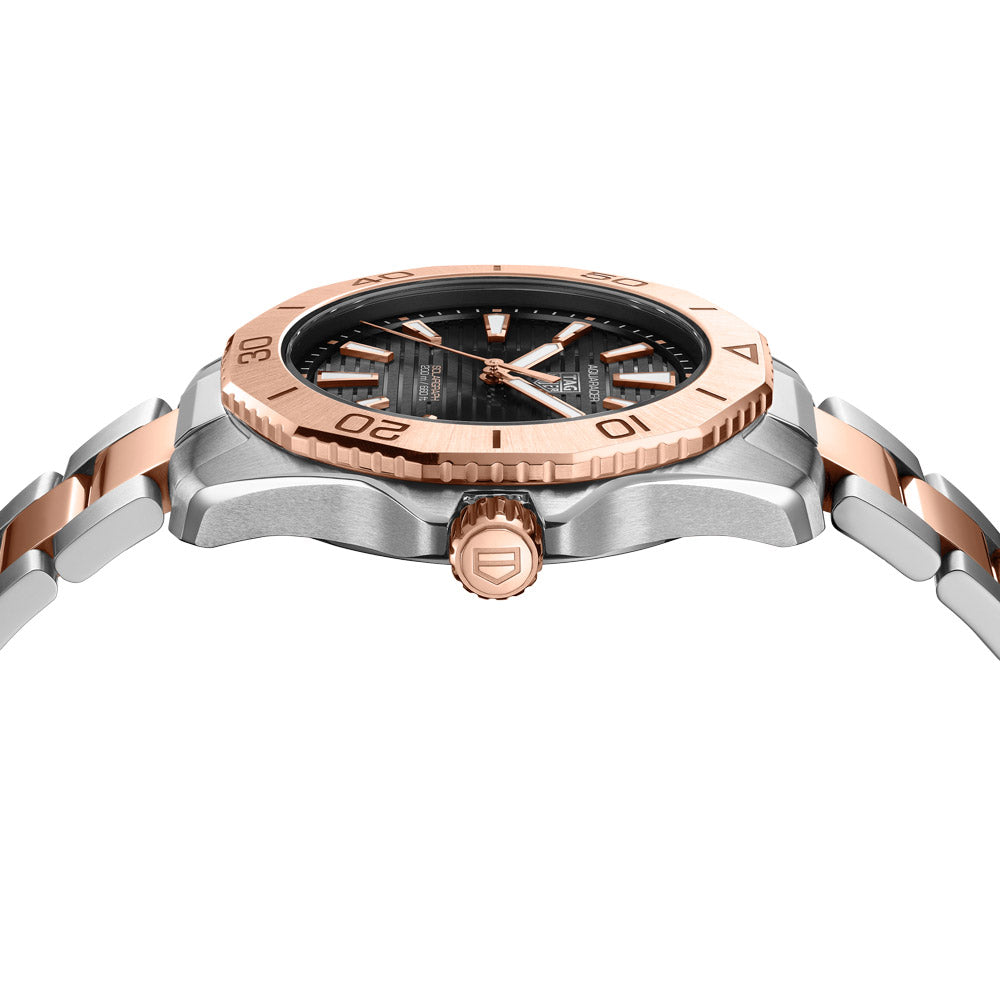 The TAG Heuer Aquaracer Professional 200 features a two-toned design with Solargraph technology and 18ct 2N gold accents. Its sturdy steel case and versatile bracelet make it a reliable choice for any situation, offering a balance of precision and elegance.