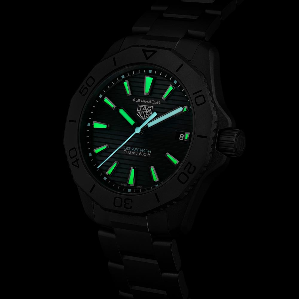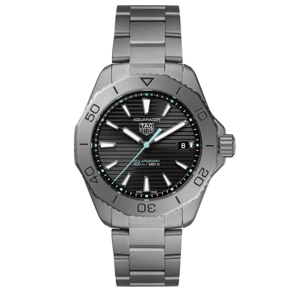 This 40mm TAG Heuer Aquaracer Professional 200 utilizes Solargraph technology, a solar-powered movement, paired with Grade 2 titanium for optimal strength and adaptability in harsh conditions. An ideal accessory for outdoor enthusiasts.