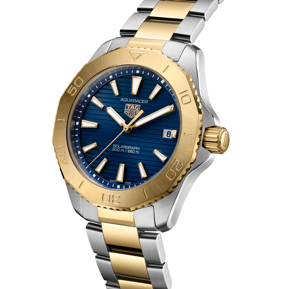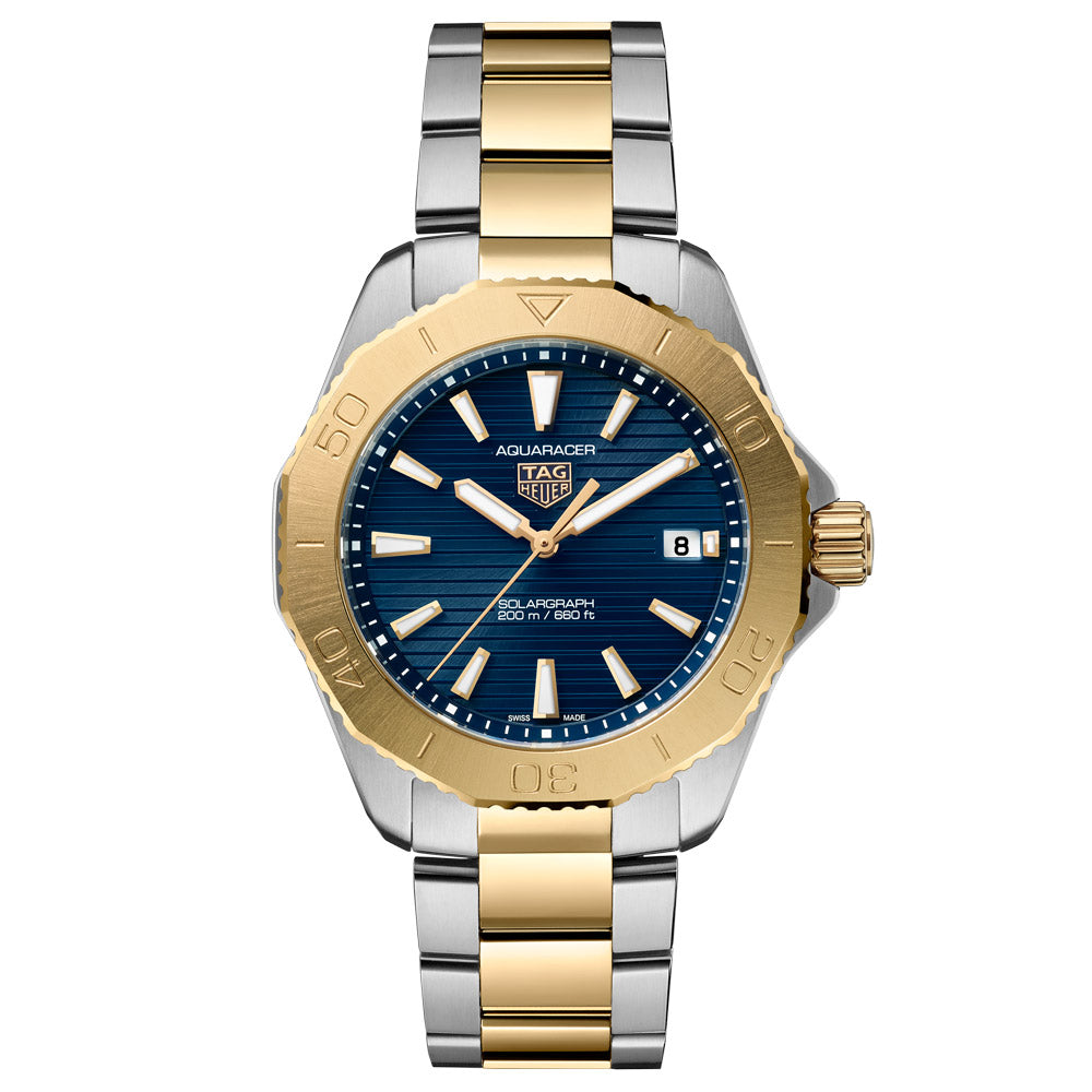 The two-toned TAG Heuer Aquaracer Professional 200 Solargraph (40mm) is a perfect blend of precision and elegance, thanks to its incorporation of Solargraph technology and 18ct 2N gold accents. It boasts a strong steel case and a versatile bracelet, making it the ideal companion for enduring any conditions while maintaining a stylish look.