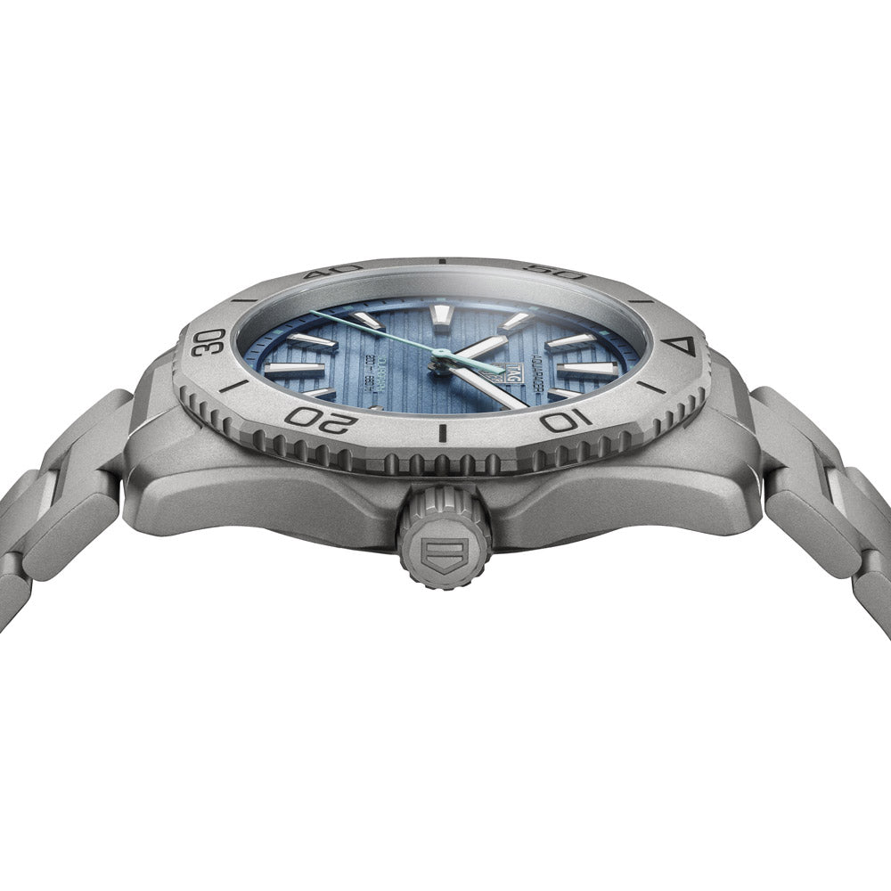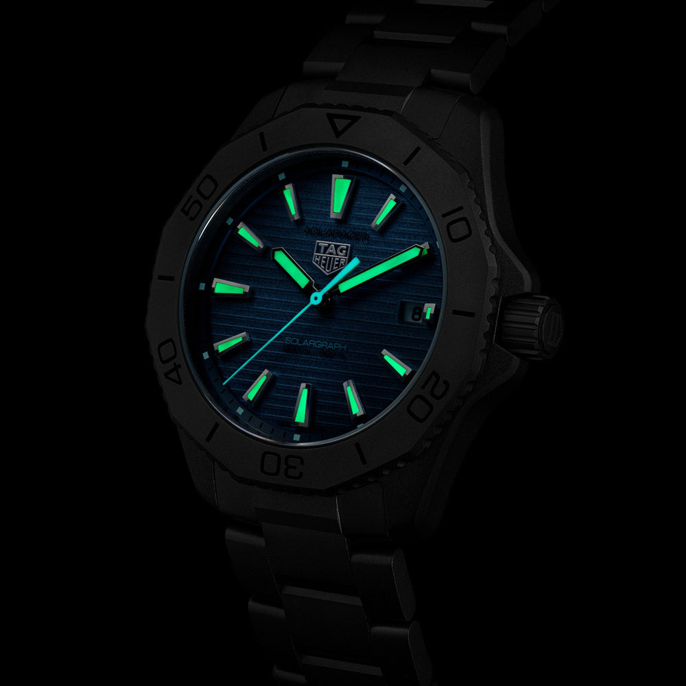 The TAG Heuer Aquaracer Professional 200 Solargraph is a versatile tool watch built to conquer any adventure. Its lightweight titanium case, polar blue accents, and Solargraph technology make it an ideal choice for any journey.