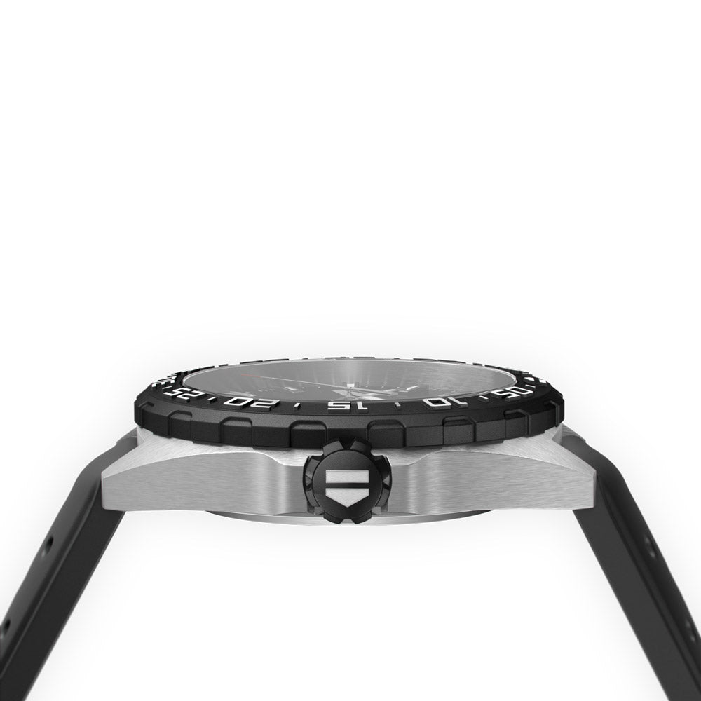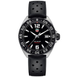 The Tag Heuer Formula 1 rubber strap is an efficient and affordable watch available today. It's an ideal timepiece for the everyday wearer and includes a rubber strap built for being durable and able to cope with day to day activities. Its 200 metre water resistance is ideal for those wet situations and the stainless steel case with its black titanium carbide bezel adds a first place finish.