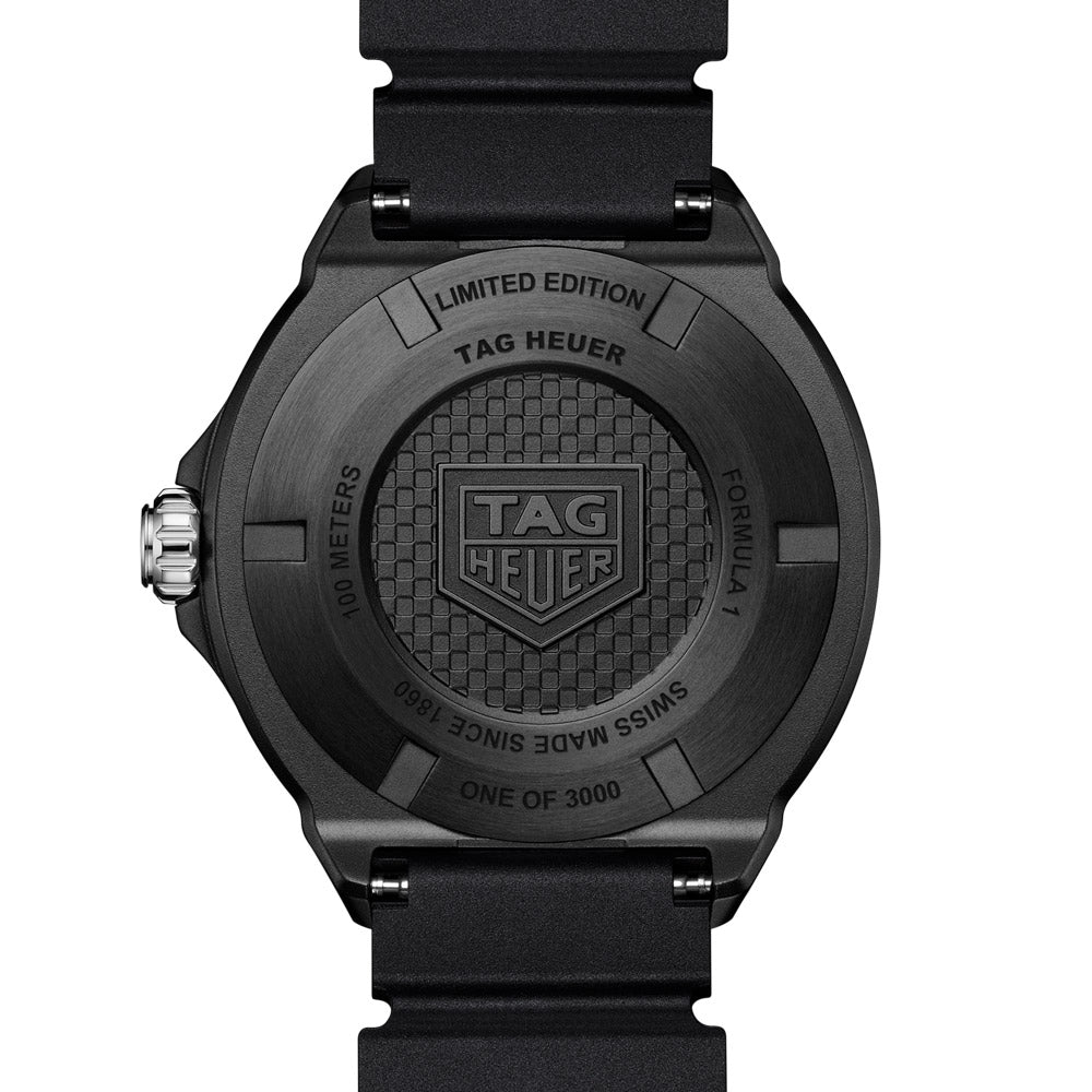 The TAG Heuer Formula 1 Solargraph (38 mm) combines bold design with advanced technology, featuring a sleek black DLC case and eye-catching red accents. Powered by the innovative Solargraph technology and equipped with the Calibre TH50-00, this exclusive timepiece is perfect for individuals who value both style and functionality.