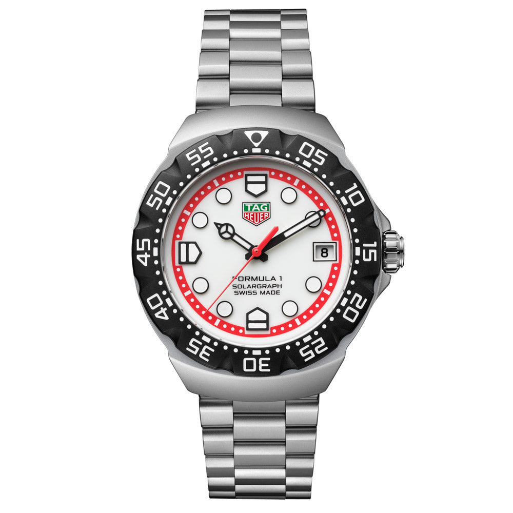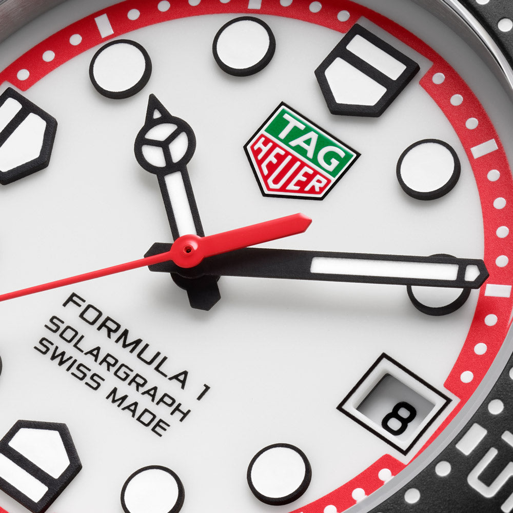 The TAG Heuer Formula 1 Solargraph in the 38mm size maintains its dynamic appeal. Its contemporary design, enhanced by a solar-powered quartz movement, reimagines the original Series 1 watch with vibrant colours and modern materials, making it the perfect watch for the new generation.