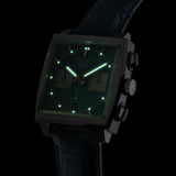 This TAG Heuer Monaco watch, featuring the in-house Heuer 02 movement, is an iconic product known in the industry. Its stainless-steel case showcases a vibrant blue PVD sunray dial and is paired with a navy leather strap. The thin Calibre Heuer 02 movement offers a remarkable 80-hour power reserve.