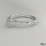 Hand-crafted in luxurious platinum, this gorgeous ring is set with a certificated 0.80ct oval cut diamond, E in colour, SI1 clarity, cradled into a four claw setting.