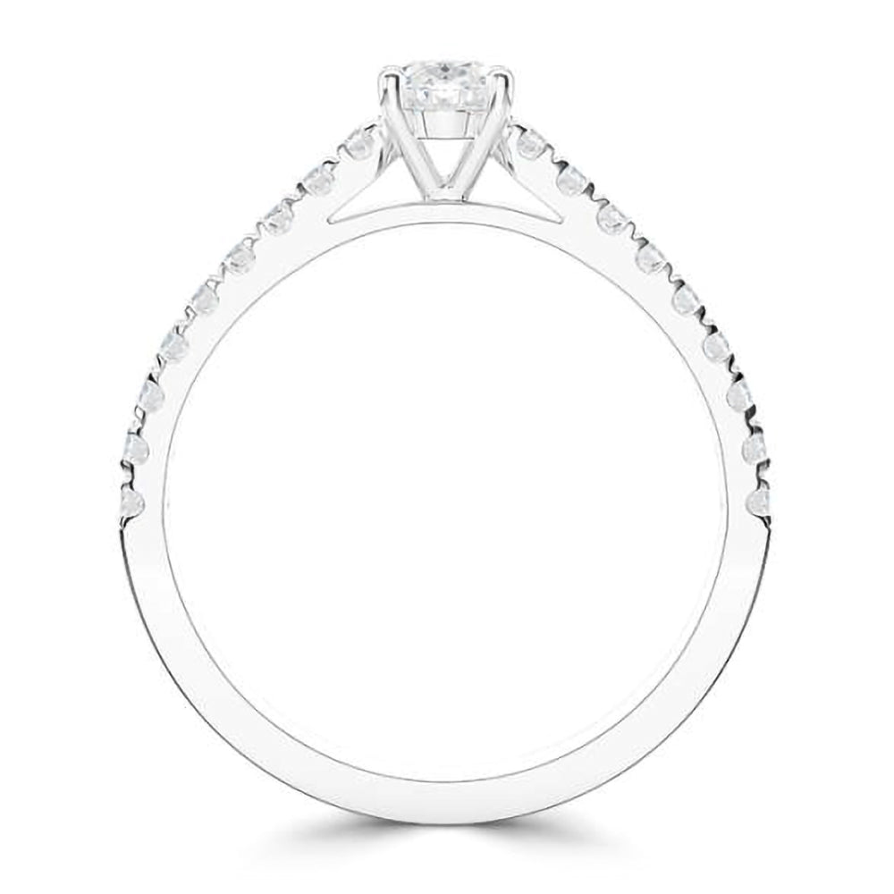 This stunning diamond engagement ring is expertly hand-crafted in luxurious platinum, and adorns a striking certificated 1.00ct oval cut diamond, D in colour, SI2 clarity, cradled into a classic four claw setting. To add further detail, the shoulders are adorned with dazzling round brilliant cut diamonds totalling 0.24ct.