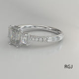 Please note, the images shown are set with a 0.50ct central emerald cut diamond.