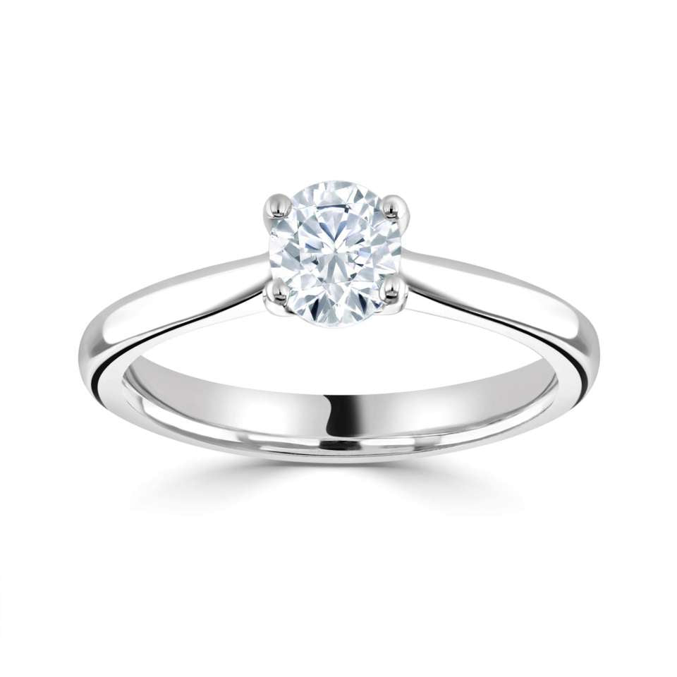 This stunning ring is hand-crafted in luxurious platinum in the UK by our highly skilled jewellers, the dazzling certificated 0.32ct round brilliant cut diamond, E in colour, SI1 clarity, is cradled in a four claw setting which has an innovative heart shape just beneath where the diamond sits.