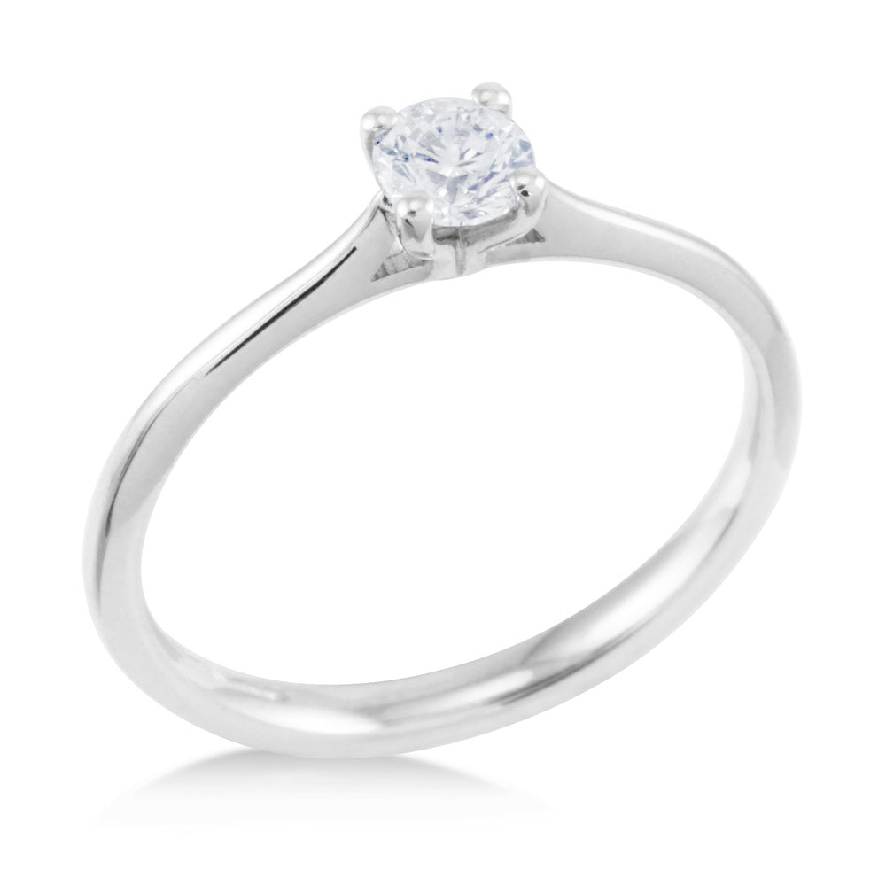 This stunning platinum engagement ring is hand-made here in the UK by our extremely skilled jewellers. Adorned with a dazzling certificated 0.50ct round brilliant cut diamond, D in colour, SI1 clarity, which is cradled elegantly in a classic four claw setting.