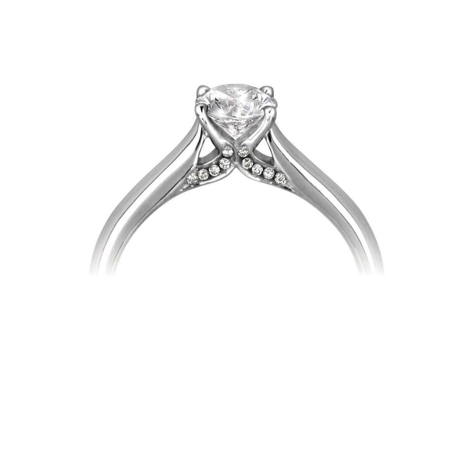 The Lunaria diamond engagement ring is expertly hand-crafted in beautiful platinum, and adorns a stunning certificated 0.41ct round brilliant cut diamond, D in colour, SI1 clarity, which is secured into a four claw setting. Underneath the setting is delicate diamond detailing, adorned with further round brilliant cut diamonds with a total carat weight of 0.04ct.