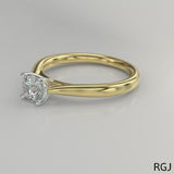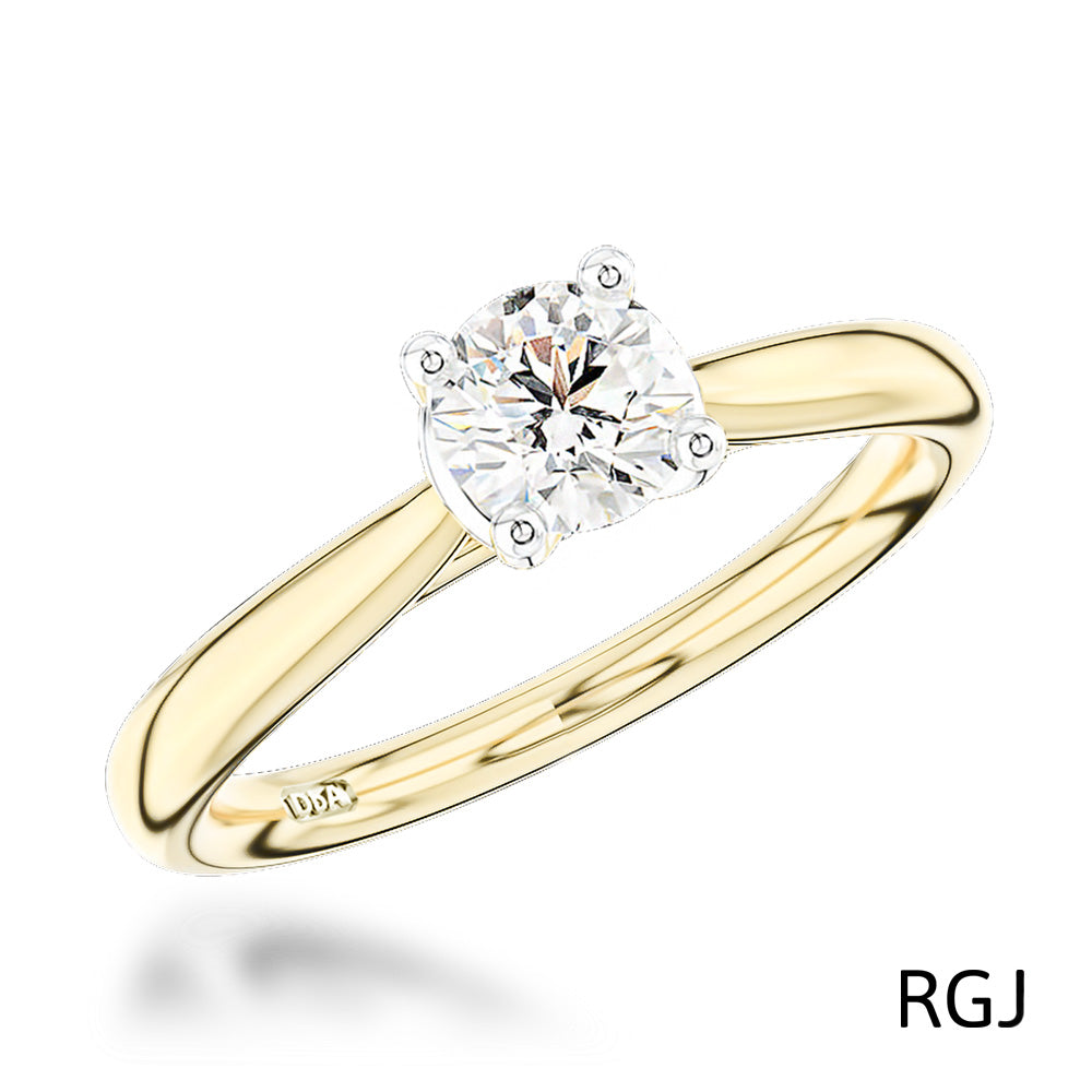Hand-crafted in luxurious 18ct yellow gold, this stunning ring is set with a certificated 0.40ct round brilliant cut diamond, E in colour, SI1 clarity, cradled in a four claw platinum setting hugging the stone like beautiful tulip petals.