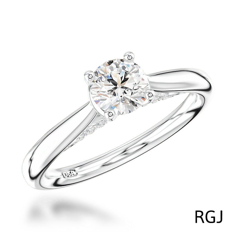 Please note, the images shown are set with a 0.50ct central round brilliant cut diamond.