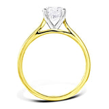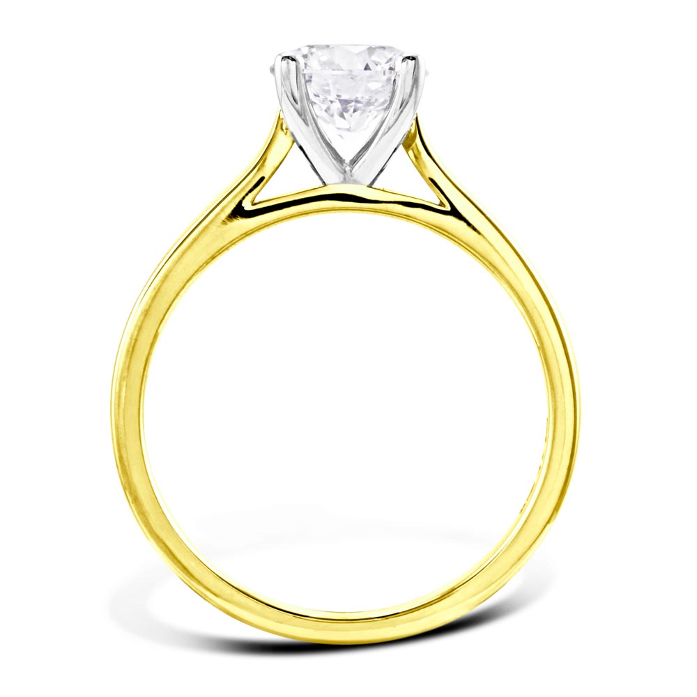 This dazzling solitaire engagement ring is expertly handcrafted in 18ct yellow gold and platinum by our highly skilled jewellers here in the UK, and set with the most scintillating laboratory grown diamond. The spectacular certificated 1.00ct round brilliant cut diamond, D in colour, VS2 clarity, sits beautifully in a classic four claw setting.