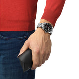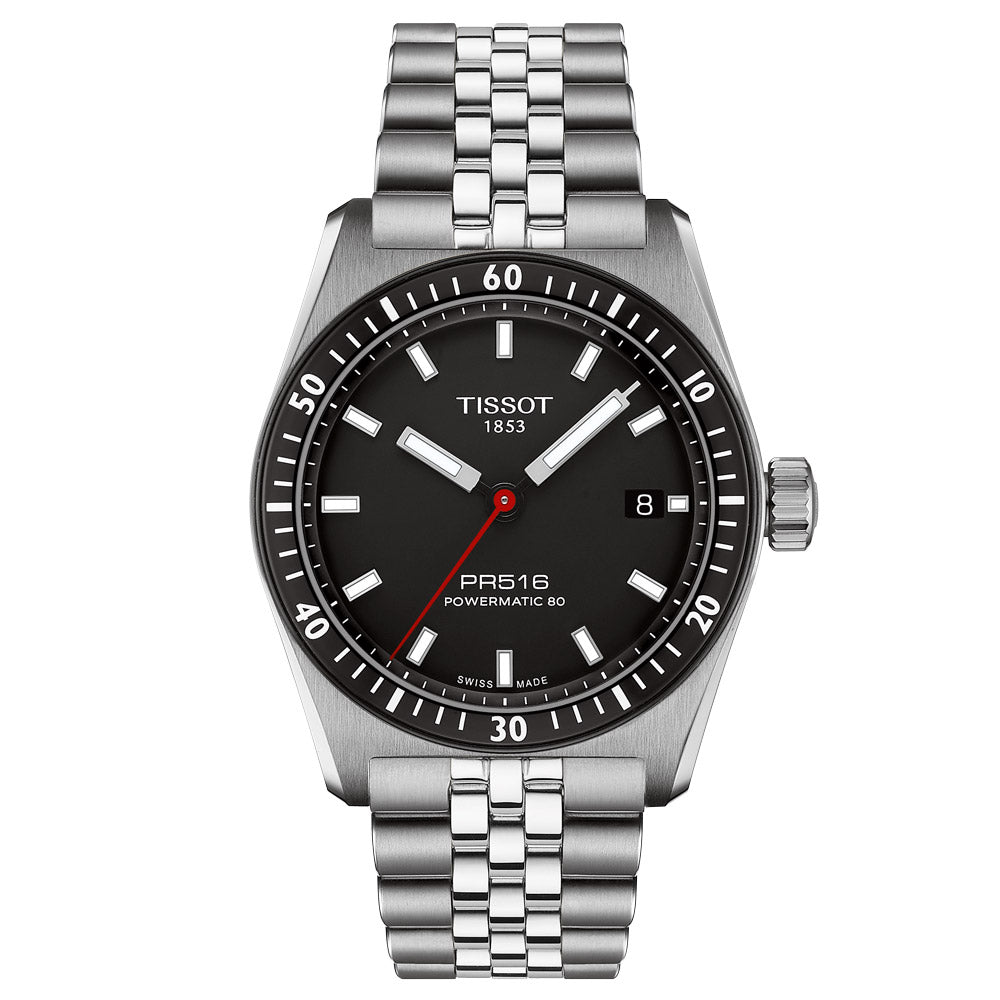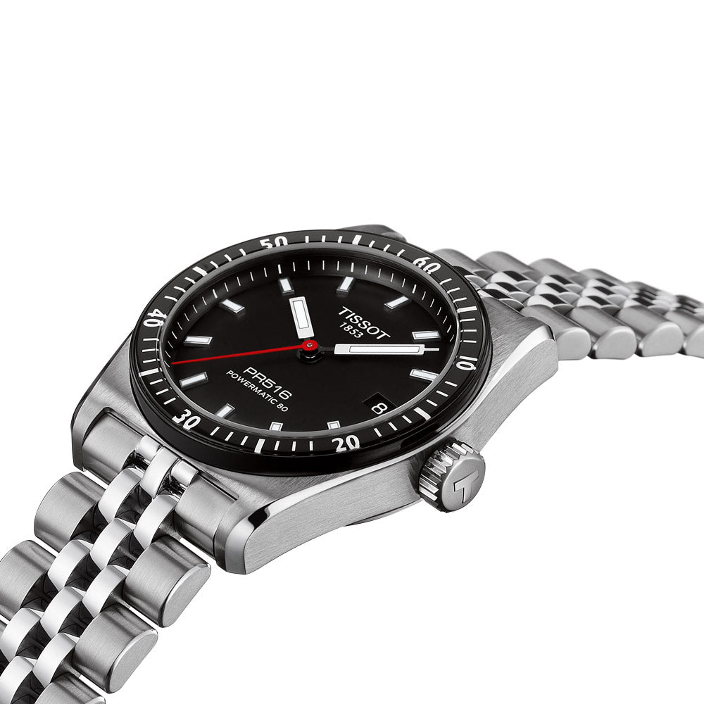The sleek stainless steel case and sporty dial of this 38mm watch represents the essence of speed and precision. With a Powermatic 80 movement, the new PR516 Powermatic 80 guarantees unparalleled accuracy for those with an active lifestyle. Super-LumiNova®️-coated indexes provide visibility in any environment. Additionally, this versatile and athletic watch features a quick interchangeable bracelet system, making it ideal for transitioning between formal and casual events. Showcasing Tissot's rich heritage, the PR516 Powermatic is a contemporary classic with its black dial and bezel and two-toned stainless steel bracelet.