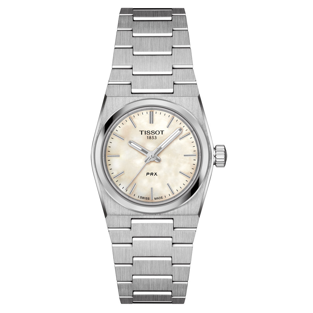 Featuring a stylish modern-vintage design and superb construction, this Tissot PRX 25mm watch is the perfect accessory that will maintain its fashion and function for years to come. Uncover the mini version of the iconic PRX with its stainless-steel case and bracelet, along with its stunning mother-of-pearl dial.