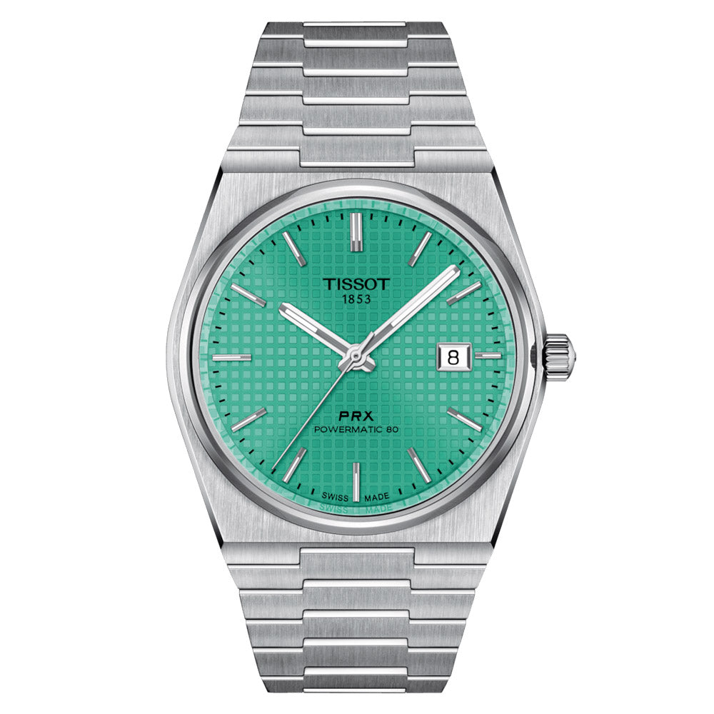 Discover the Tissot PRX Powermatic 80, boasting an authentic ‘70s feel and modern features. With its slim and smooth design, this watch is a must-have for those with an eye for style. The self-winding Powermatic 80 movement, equipped with Nivachron hairspring, offers reliability and precision, along with an impressive 80 hours of power reserve. The 1978 Tissot case shape, mint green honeycomb dial, and stainless steel bracelet combine for a trendy and sophisticated look that belongs on every watch enthusiast's wish list.