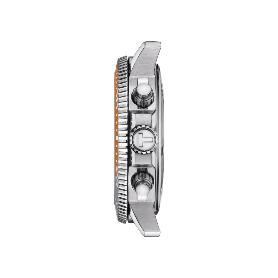 This Tissot Seastar 1000 Chronograph is the pinnacle of diving equipment, boasting both stunning aesthetics and exceptional technical capabilities. With a pressure resistance of 30 bar (300m), it proves that a sports watch and a chronograph can coexist in one remarkable piece. Its diving theme is ever-present, featuring a unidirectional aluminum bezel, luminescent hands, and indexes. Additionally, the Tissot Seastar 1000 collection offers a variety of compatible straps to suit your preferences.