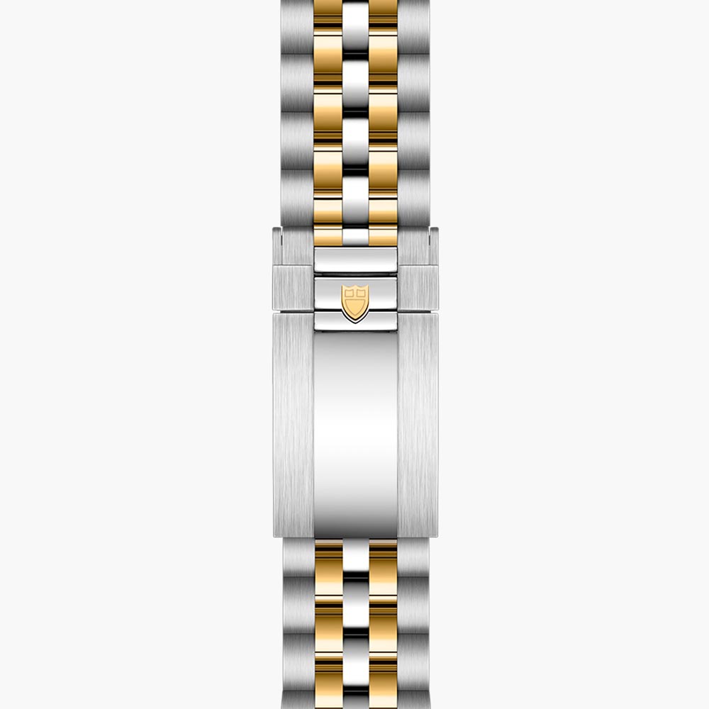 This 41mm TUDOR timepiece in stainless steel and yellow gold boasts a black dial with contrasting golden toned minute markers and off-white Super-LumiNova hour markers and hands - the signature 'snowflake' hand remains an iconic feature of this model. This model houses a self-winding mechanical movement with bidirectional rotor system, Manufacture Calibre MT5601 (COSC), with a power reserve of approximately 70 hours. Finally, it is fitted with a steel and yellow gold bracelet in polished and satin finish, with a "T-fit" folding clasp and safety catch.