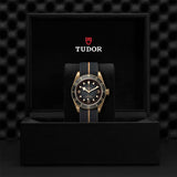 The TUDOR Black Bay Bronze, a divers’ watch inspired by the brand’s history and fitted with the TUDOR Manufacture Calibre MT5601 offering an approximate power reserve of 70 hours. This 43mm timepiece boasts a bronze case with bronze-coloured PVD-treated steel case back and satin finish. The off-white Super-LumiNova hand and hour markers contrast the slate grey dial, which is framed with a unidirectional rotatable bezel in bronze with 60-minute graduated disc in matt slate grey anodised aluminium. Finally, it is fitted with a slate grey fabric strap with a bronze-coloured centre stripe and bronze buckle.