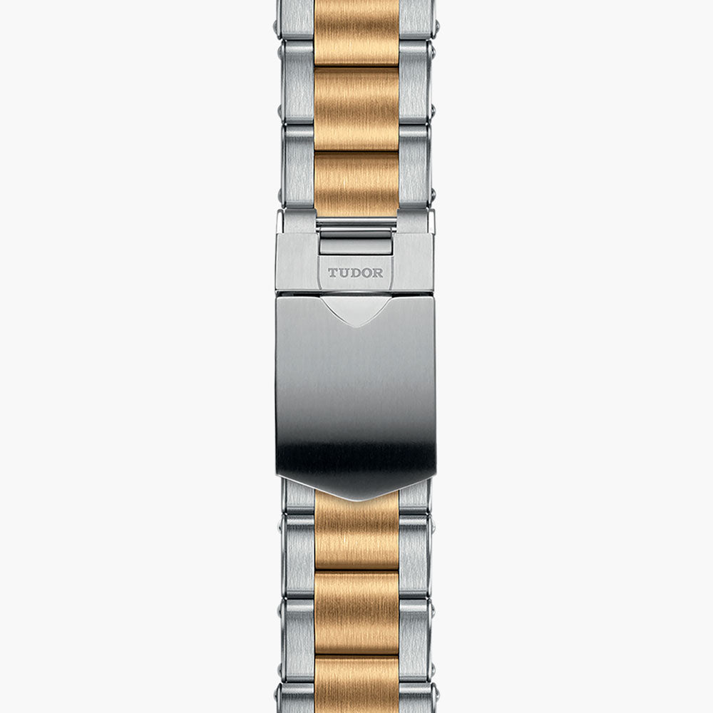 In 2017, TUDOR introduced this steel and gold version to the famous Black Bay family, featuring for the first time a new date function. This particular timepiece boasts a black dial with off-white hour markers and hands, which is framed by a contrasting yellow gold bezel and black disc. It is fitted with a steel and yellow gold bracelet with folding clasp and safety catch. It is powered by a self-winding mechanical movement, Manufacture Calibre MT5612 (COSC), with a power reserve of approximately 70 hours.