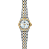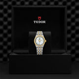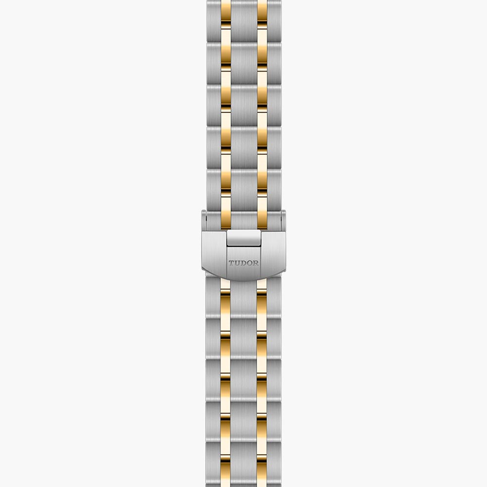 Royal is the name first used by TUDOR in the 1950s to emphasise the superior quality of its watches. With this heritage in mind, the TUDOR Royal collection offers versatile sport-chic watches with an integrated bracelet and a variety of dial options. This particular steel and yellow gold timepiece boasts a 28mm mother-of-pearl dial set with 8 diamonds and roman numerals, and a date window visible at 3 o'clock. Framing the dial is a dazzling yellow gold diamond bezel set with 60 diamonds. At the heart of this timepiece is a mechanical movement, Calibre T201, engineered to offer a power reserve of up to 38 hours. It is fitted with an integrated 5 row steel bracelet with folding clasp and safety catch.